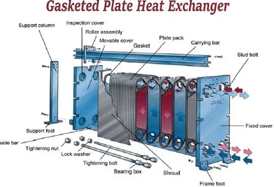 A plate heat exchanger is a type of heat exchanger that contains a series of corrosion-resistant metal (such as stainless steel, or titanium) to transmit heat between two fluids. The plate heat exchanger works on the principle of thermodynamics. In these heat exchangers, each plate has a confined, hollow tubular shell.